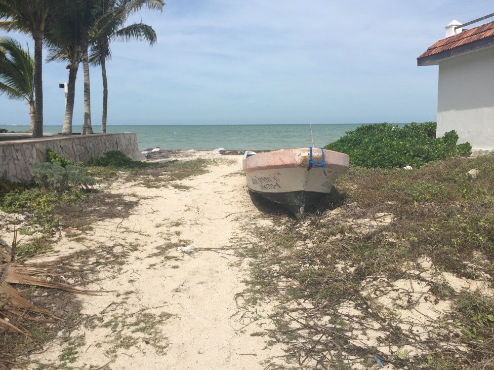 Days in Progreso begin with a slow cup of coffee and breakfast outside on the balcony. No need to get dressed, just put on a bathing suit. After coffee, I walk down Calle 30 for a swim in the ocean. On my way I pass the craftsmen building a little casita by the sea and call out “Hola”. They are doing a beautiful job. Scott and I have peeked in the windows and it’s coming along nicely. There are two bedrooms and a big outdoor patio. Unlike most of the homes on the ocean, it’s built back from the sea with space for a lovely garden! Someone is building their little dream home by the sea… Perhaps one day, we’ll have a little casita on the sea, with palm trees, cool breezes and an outdoor patio.